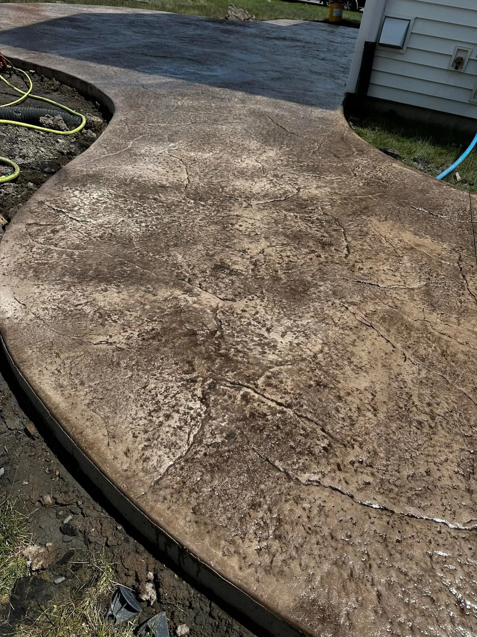 We specialize in expertly crafted stamped concrete patios that elevate your outdoor living space with bold style and lasting durability. Upon completion of the installation, we grade the surrounding soil and apply premium grass seed to ensure a seamless, lush landscape. Additionally, we meticulously clean and professionally seal the patio, providing a polished surface that is immediately ready for your enjoyment.